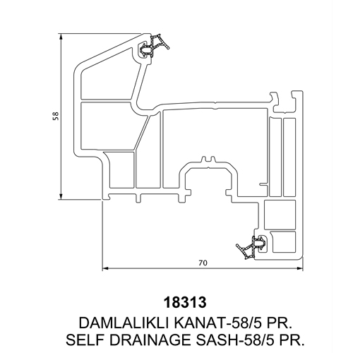 Düz kanat profiline ilave olarak damlalıklı kanat profili seçeneği de sunulmaktadır. Damlalıklı kanat profilinde damlalık kısmı 70mm ölçüsüne dahil değildir. Bu kısım dahil edildiğinde profil ölçüsü 80mm olmaktadır.