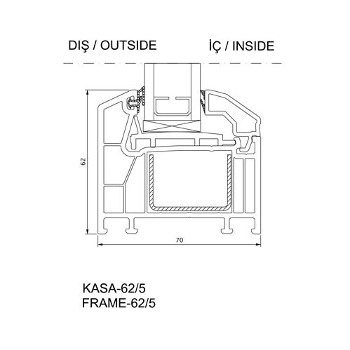 Kendinden pervazlı kasa profili ile iç yüzeyde, doğrama-duvar birleşimlerinde görsel bütünlük sağlar.
